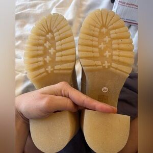 New In Box. Soft smooth white (off white) leather boots with gummy sole, by Free People. Versatile and chic.