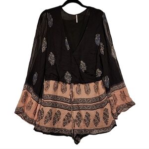 Free People Janpath Romper Jumpsuit Bell Sleeve Lightweight Sheer Floral Print S