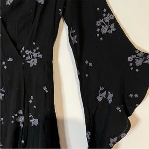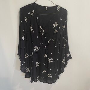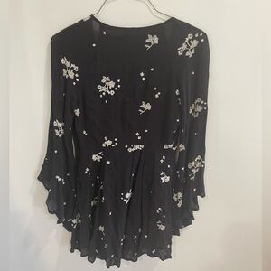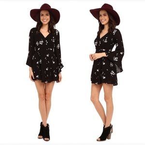 An airy Free People mini dress with a flared skirt. Ruffle cuffs and floral embroidery accentuate the romantic feel. Features: