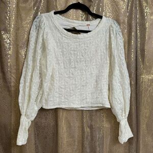Free People Jasmine Tea Time Long Puff Lace Sleeve Open Back Top Ivory Medium