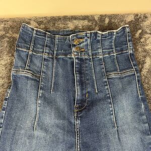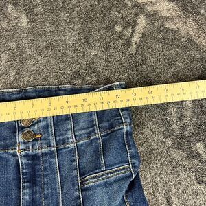 Free People Jayde Flare Blue Denim Jeans Women's 29 High-Rise Stretch Western. **Minor snag on back of jeans as shown in photos; no other flaws noted. Refer to all photos for condition and sizing.