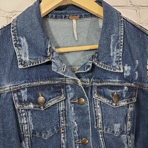 Free People Jean Jacket Boho Sweater Sleeves Distressed Womens Size M