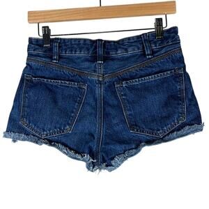 Free People Jean Shorts Womens 26 Dark Wash Denim Raw Hem Cheeky Y2K Daisy Dukes