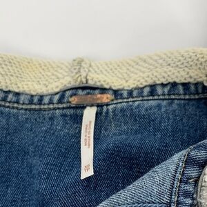 Free People Jean denim jacket hoodie gray blue distressed trucker combo coat XS