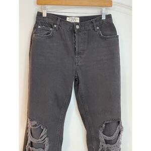 Free People Jeans 26 Maggie Black Mid Rise Grunge Button Fly Festival Whimsygoth