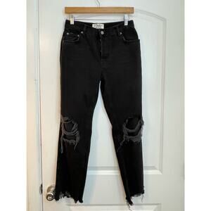 We the Free, Free People Jeans 26 Maggie Black Mid Rise Grunge Button Fly Festival Whimsygoth Cropped Raw Hem NWOT
