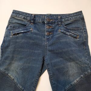 Free People Jeans Skinny Moto Style Zippered Pockets Ankles Dark Wash Waist 28