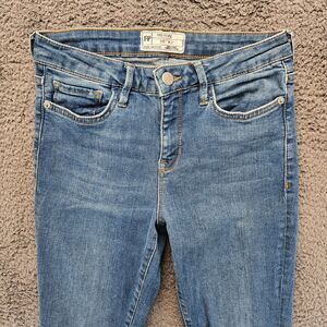Free People Jeans Womens 27 Blue Raw Hem Fringe High Rise Denim