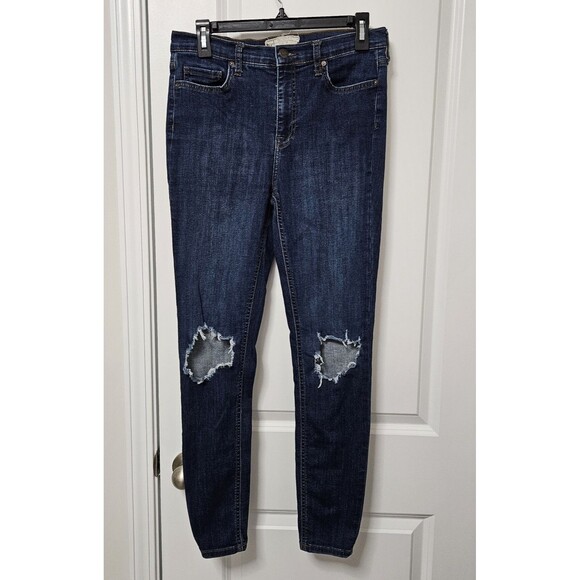 Free People Jeans Women's 29 (30x28) Blue Skinny Mid-Rise Distressed Ripped