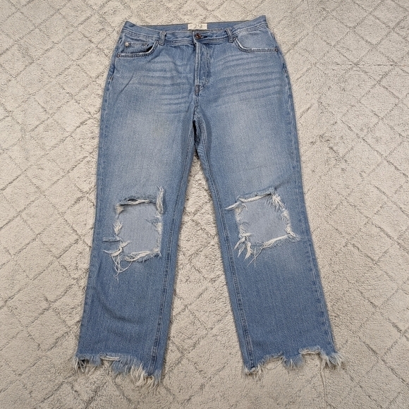 Free People Jeans Women's 29 Blue Light Stone Maggie Straight Distressed Cotton