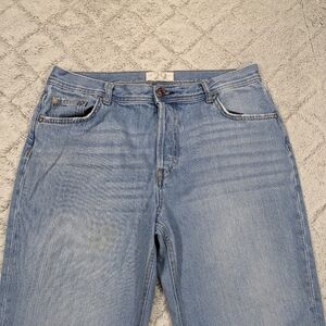 Gently Pre-Owned. Great condition. Distressed knees. Frayed Hem. Button Fly. High Rise.