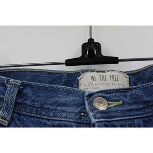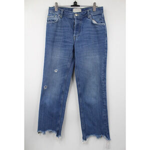 Free People Jeans Womens Medium Wash Blue Distressed Staright Frayed Hem Size 25
