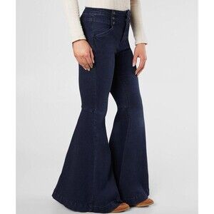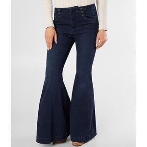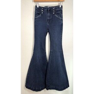 Free People Jeans Womens W25 Super Flare Bell Bottom Dark Wash Blue Denim Hippie