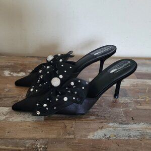 Free People Jeffrey Campbell NEW Rhinestone Bow Kitten Heels Black Shows size 8