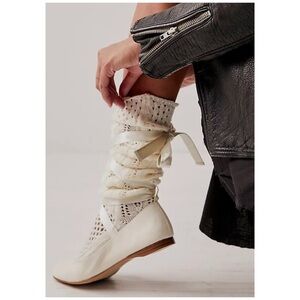 NWOT Free People Jeffrey Campbell That’s A Wrap Ballet Flats Tan Hi guam Bow. Size 8.