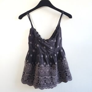 Free People Jenna Embroidered Black Cami Top NWT Size Medium