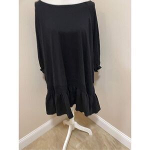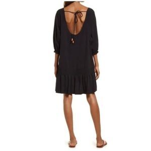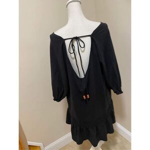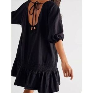 So sweet and essential, this timeless mini dress is featured in a shapeless, babydoll-inspired silhouette with exaggerated sleeves and ruffled bottom hem for added dimension.