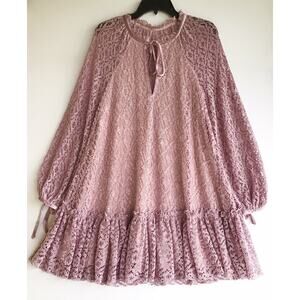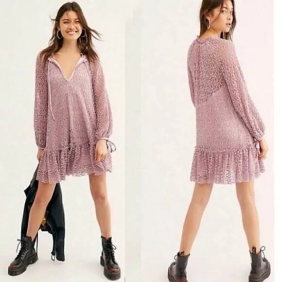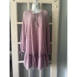 Free People Jenny Purple Crush Velvet Dress Womens Sheer Ruffle