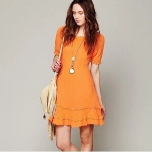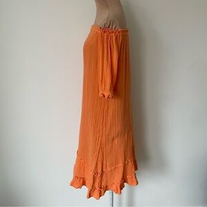 Free People Jen's Pirate Booty Cotton Orange Gauze Boho Off Shoulder Dress P/S