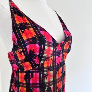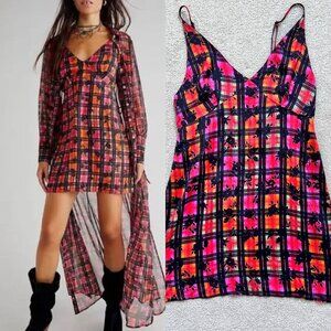 Free People Jerra Slip Dress – Pink Plaid & Floral Mini – Size XS