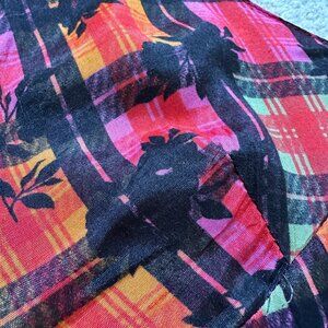 This vibrant Free People Jerra slip dress combines a bold pink plaid pattern with a subtle floral overlay for a unique, boho-chic look. The lightweight, flowy fabric makes it perfect for layering over a bralette, under a long cardigan, or pairing with the matching sheer maxi overlay (sold separately) for a statement outfit.