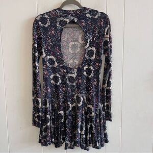 In great pre-love condition from a smoke and battery home. Please review all photos before purchase and bundle for a great discount . This stunning tunic dress by Free People features a chic cut-out and backless design, perfect for a night out. The long bishop sleeves and mock neck add a touch of elegance, while the stretchy fabric ensures a flattering fit. Ideal for casual outings, this dress combines style and comfort effortlessly.