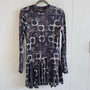 Free People Jersey Annabelle Printed Tunic Mini Dress Plum Combo