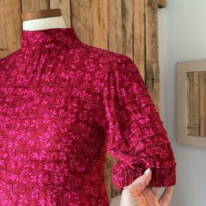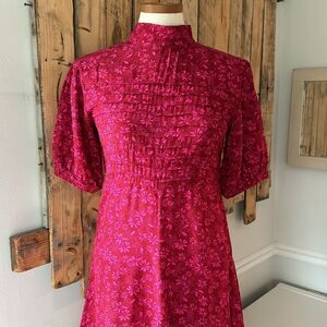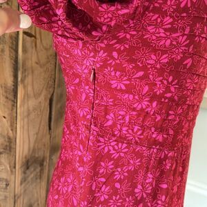 Free People Jessie Midi Dress Red Pink Ditsy Floral Print Viscose Boho Size XS