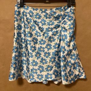 Free People Jessie Satin Slip Skirt In Blue Floral Mini Skirt Women's Size 10