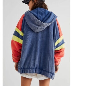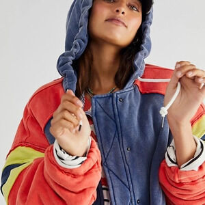Forever classic in a varsity-inspired design, this classic hooded jacket is featured in a color-blocked style and relaxed, slouchy silhouette for added shape.