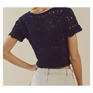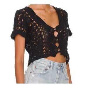 Free People Jilly Crop Crochet Cardigan in black size S /P