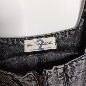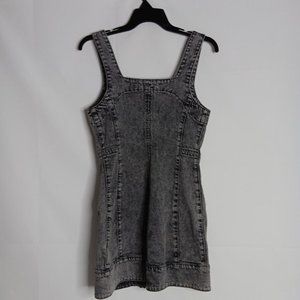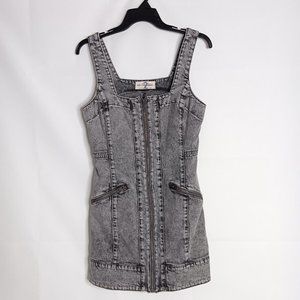 Free People Johnny Black Denim Mini Dress Acid Wash Fitted size 2
