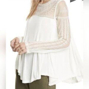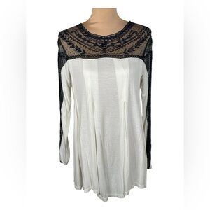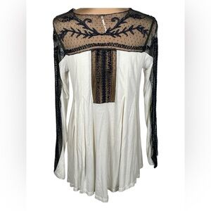Free People 🖤 Jojo Lace Contrast Long Sleeve Top XS Oversized
