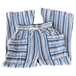Free People Jones Beach Wide Leg Stripe Pants Small Cotton Gauze Pockets Boho