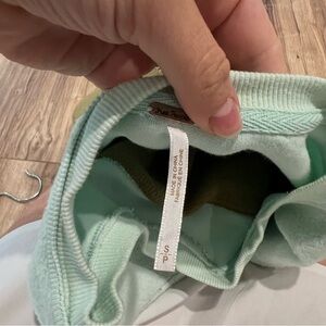 Oversized fit with two pockets. So cozy! Olive green and mint green combo.