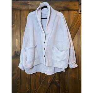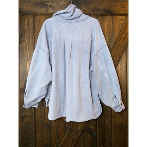 Free People Jordan Slouchy Reversed Fleece Jacket Boho Oversized Hippie M Blue