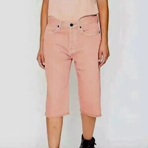 Free People Sandrine Rose Jorts 25 Pink Bermuda Raw Cut Off Baggy Soft Shorts Beach Festival Loose Petal Jeans Frayed Long Denim Goth Grunge Punk Emo Rock Moto Biker