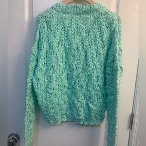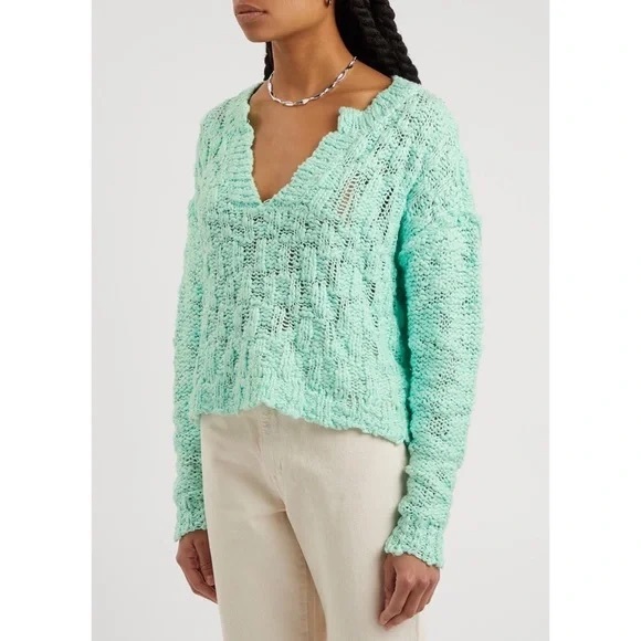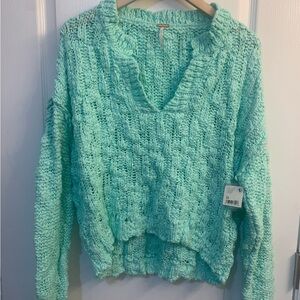Free People Josephine Cotton Knit V-Neck Long Sleeve Pullover Sweater Mint M NWT