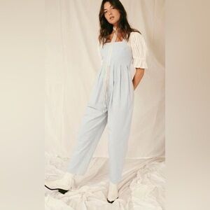 Free People Josephine Jumpsuit Size XS Overalls Low Bow Back Tie Light Blue