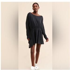 Free People Josie Thermal Dress Medium Black Waffle knit dress tunic