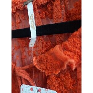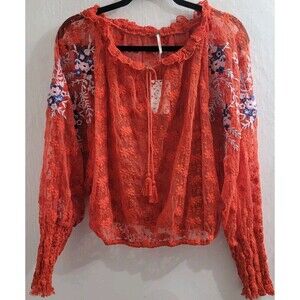 Free People Jubilee Embroidered Lace Boho Sheer Blouse Top Red Sz Small OB754354