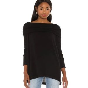 Free People Juicy Long Sleeve Black Ribbed Split Back Cowl Neck Top - M
