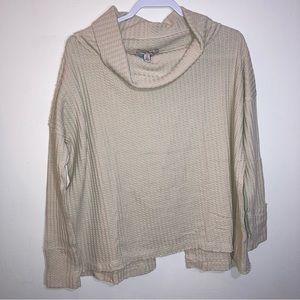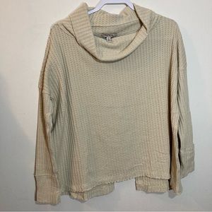 Free People Juicy Long Sleeve Top Thermal Cowl Neck Waffle Knit Relaxed Sweater
