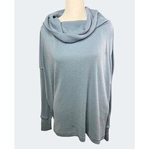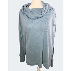 Free People Juicy Ribbed Dusty Blue Cowl Neck Sweater Loose Fit Small