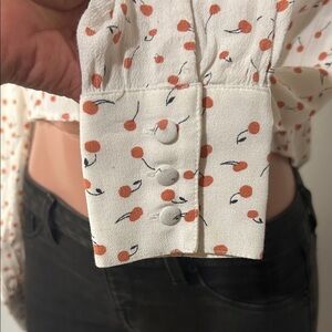 Free People Julia Sweetheart Top Ivory Cherry Print Women's Long Sleeve Size S