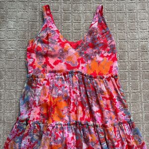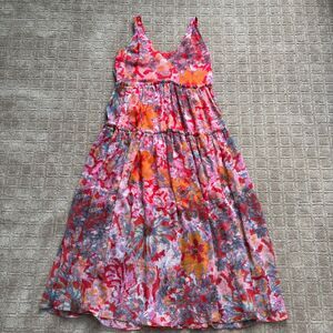 Free People Julianna Multi Tiered Maxi Dress Women L Red Sheer Overlay Airy Boho