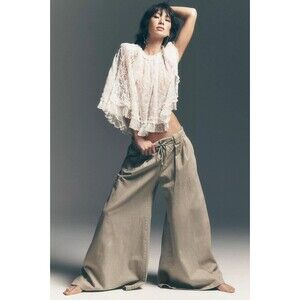 Free People Julien Wide-Leg Chino Trousers Pants Pleated Cotton XL NEW 282569