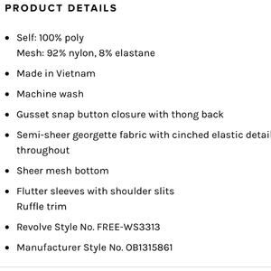 - semi-sheer georgette fabric with cinched elastic detail throughout