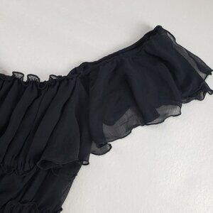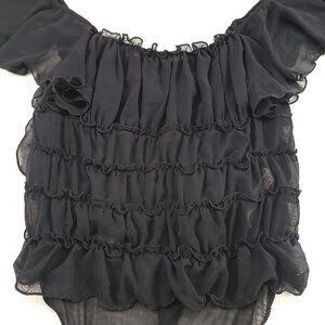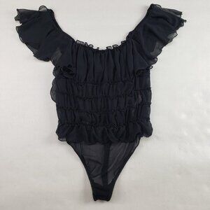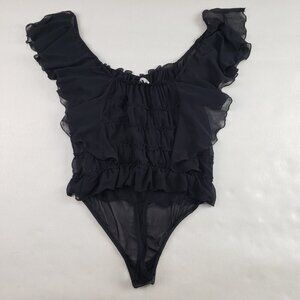 Free People Juliet Ruffled Bodysuit Top Womens Medium Black Intimately Sheer