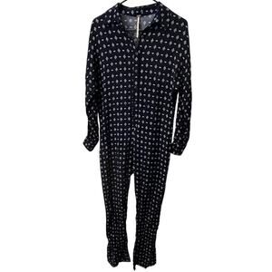 Free People Jump On It Jumpsuit Navy Blue 100% Rayon Long Sleeve Size XS